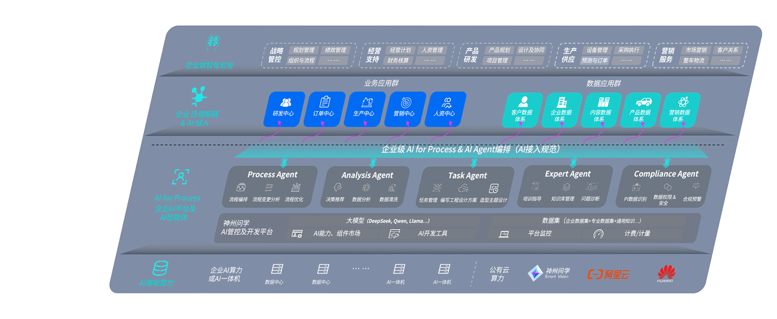 端到端的一站式AI工作空间深度融合了从企业战略规划到日常经营的全流程业务板块,,,定向解决车企内部领域多、、、、部门多、、、链条长、、、、场景碎片化等难题,,,支持车企快速构建以AI为核心的生产力写作体系,,,,实现任务执行与AI能力的无缝集成与交互